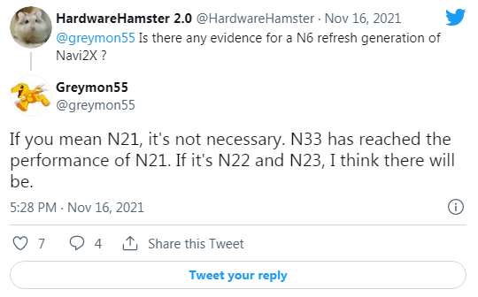 По его сведениям, графические чипы Navi 22 и 23, на которых базируются видеокарты AMD Radeon RX 6700 XT и 6600 XT, могут получить обновление в виде перехода с текущего 7-нм на 6-нм технологический процесс производства. Такое решение может быть принято AMD в связи с огромным дефицитом 7-нм производственных мощностей на предприятиях TSMC и целью обновления будет увеличение объёмов производства, а не улучшение производительности видеокарт. Тем не менее надежда на повышение частоты GPU при переходе на 6-нм несомненно есть.