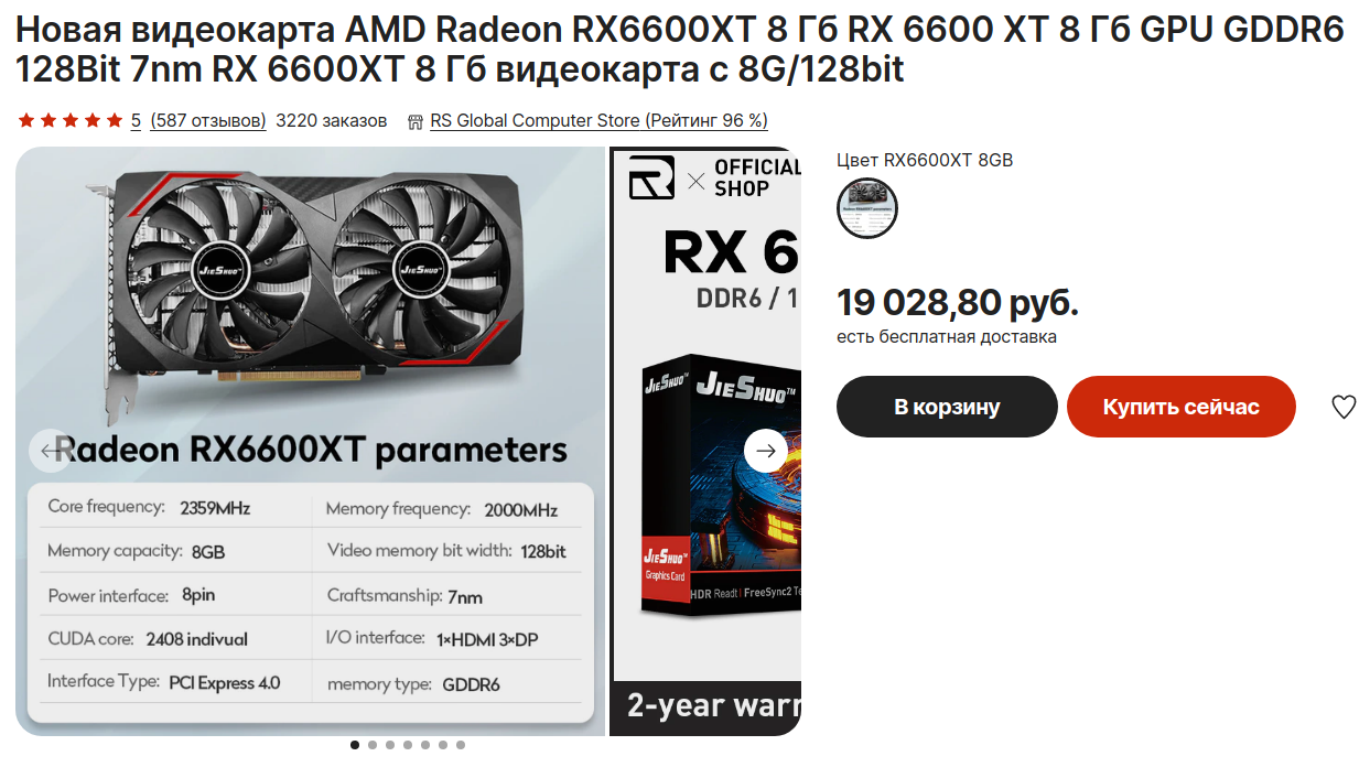 Нет никаких сомнений, что по сравнению с новыми моделями, там действительно можно отыскать выгоду, вот только очень часто вместо запакованной видеокарты вам присылают слегка потёртый графический чип, длительное время работавший на ферме. Иногда продавец даже пишет об этом прямо, но мелким шрифтом, а в целом не всегда выгода на AliExpress очевидна. Бывает так, что видеокарта выходит из строя в течение нескольких часов или дней после покупки, а значит вы выбросите деньги на ветер. Можно заглянуть на тот же Авито, где предостаточно видеокарт после майнеров и геймеров. Ну а мы посмотрим на отремонтированные модели в Ситилинк.