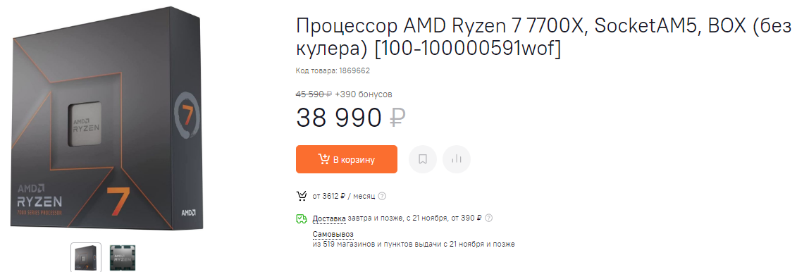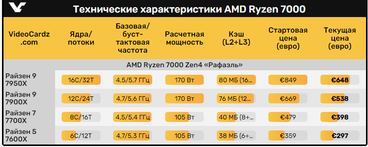 Цена на 8-ядерный 16-поточный AMD Ryzen 7 7700X также весьма упала: если до сегодняшнего дня за геймерскую модель пришлось бы отдать $399, то сейчас процессор оценён в $349.