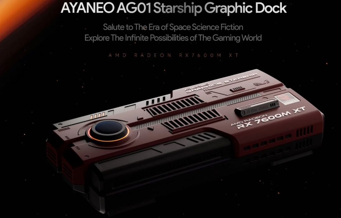 Встроенным в устройство графическим ускорителем является AMD Radeon RX 7600M XT с 8 ГБ памяти GDDR6 и тактовой частотой 2300 МГц. Общая графическая мощность (TGP) платы составляет 100 Вт, но пользователи могут включить турборежим на 120 Вт всего лишь нажатием кнопки. Док-станция имеет массу 960 грамм, имеет размеры 240 x 118 x 51 мм и оснащена RGB-подсветкой. Компания Ayaneo предлагает AG01 Starship по цене 599 долларов США.