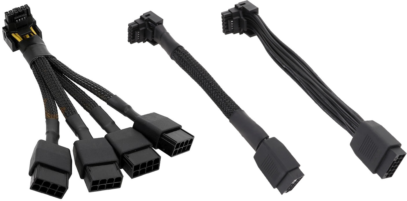 ModDIY выпустила два угловых адаптера 12VHPWR. Они представляют собой удлинитель (12VHPWR на угловой штекер 12VHPWR) и кабель 4x 8-pin на 12VHPWR.