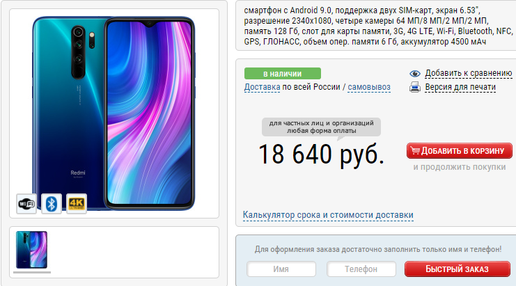 Герой заметки на китайской торговой площадке предлагается в модификации с 6 ГБ оперативной памяти и встроенным флеш-накопителем на 64 ГБ. Цена составляет около 180 долларов. При этом рекомендованная стоимость – 199 евро или 235 долларов. Redmi Note 9 Pro в этой же конфигурации на AliExpress стоит примерно на 40 долларов дороже, а в России официальная цена и вовсе составляет 315 долларов (23 990 рублей), правда, встроенной памяти предусмотрено вдвое больше.