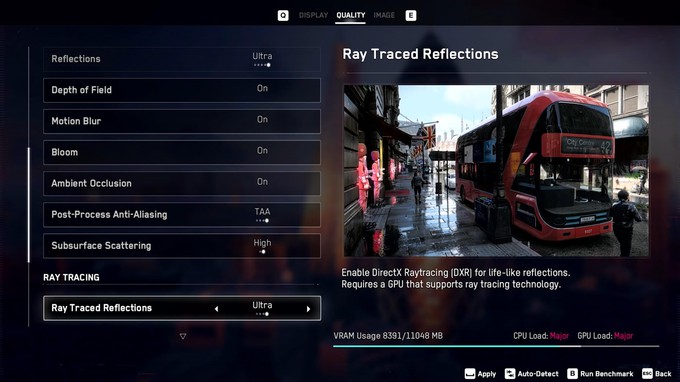 - Ray traced reflections (RTX) — трассировка лучей, очень мощная настройка, но красивая.