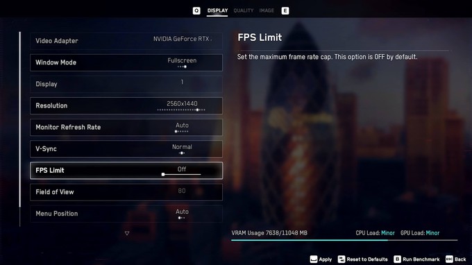 По графическим настройками все почти идентично с другими проектами, а именно DirectX 11 либо 12, трассировка лучей и угол обзора, настройка вертикальной синхронизации, также можно ограничить частоту кадров, например если игра не может идти в 60, но при этом идет в 40, можно поставить ограничение, чтобы ФПС не прыгал.