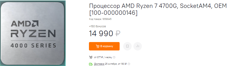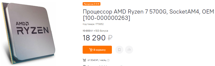 Из 8-ядерных камней Ryzen 7 5700G смотрится интересно и даже напоминает бюджетный вариант. Всё дело в том, что внутри геймеров поджидает интегрированная графика. Это значит, что вы не потеряете доступа к играм, хотя рассчитывать на доступ к требовательным новинкам не приходится. Разработчики всё меньше внимания уделяют оптимизации, полагаясь на мощные видеокарты за несколько тысяч долларов. Встроенная графика на Ryzen 7 5700G хороша, но не позволяет надеяться на подобные свершения. В то же время сам камень очень неплох в решении самых разнообразных задач и стоит 18 290 рублей. Это самая низкая цена со старта продаж, что делает Ryzen 7 5700G действительно хорошей покупкой.