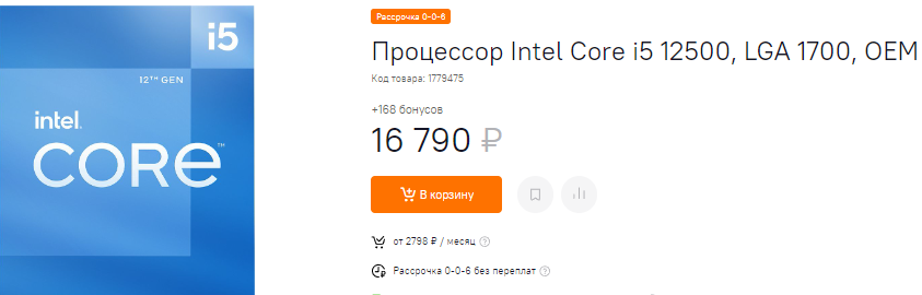У Core i5-12500 есть то, чего нет у многих процессоров, которые сегодня лежат на прилавках магазинов. Дело в том, что перед нами представитель семейства Alder Lake, а значит высокая производительность в играх гарантируется. Вы можете купить неплохую видеокарту, выжимая все соки из любой даже самой требовательной игры. Стоит такое удовольствие под 17 тысяч рублей. Камень включает 6 ядер с тактовой частотой до 4.6 ГГц. Надеемся, что вы не строили планы по разгону, ведь здесь его нет, что открывает обширные возможности по экономии. Отказываемся от дорогих материнских плат, от дорогой оперативной памяти, ведь самое главное находится внутри процессора.