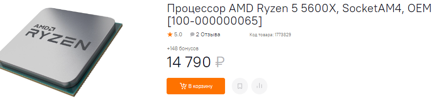 Мы не можем обойтись без главного 6-ядерного процессора AMD на рынке. Судя по всему, Ryzen 5 5600X ещё долго будет оставаться популярен, поскольку камни текущего поколения не оправдали надежд геймеров. Да, прирост производительности есть, но у синих этот показатель выше, а цена новинок AMD такова, что для сборки процессора с материнской платой и оперативной памятью придётся выложить в 2-3 раза больше, чем на аналог на Ryzen 5 5600X. Теоретически, с самой быстрой видеокартой на рынке в разрешении 4К разница будет, но владельцы Ryzen 5 5600X предпочитают недорогие графические чипы и разрешение 1080р. Ну а здесь выгода близится к нулю. Зачем же переплачивать?