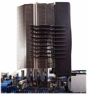 Устройство состоит из двух алюминиевых стоек, к которым крепится сама охлаждающая конструкция, состоящая из двух радиаторов и высокооборотистого, но тихого вентилятора по центру. Кулер отличается от конкурентов тем, что его можно использовать с модулями памяти, оснащенными радиаторами любой высоты, потому что охлаждающий модуль можно перемещать вдоль алюминиевых стоек крепления по четырем позициям.