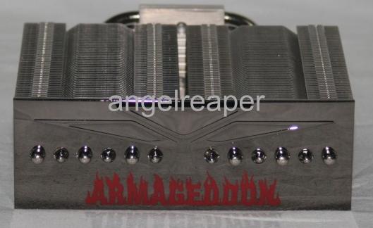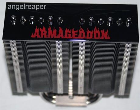 Большинство суперкулеров использует тепловые трубки U-образной формы, а радиатор Armageddon совершенствует привычную конструкцию следующим образом: шесть выходящих из основания тепловых трубок разворачиваются в радиаторе в перпендикулярной плоскости, выстраиваясь в одну линию.