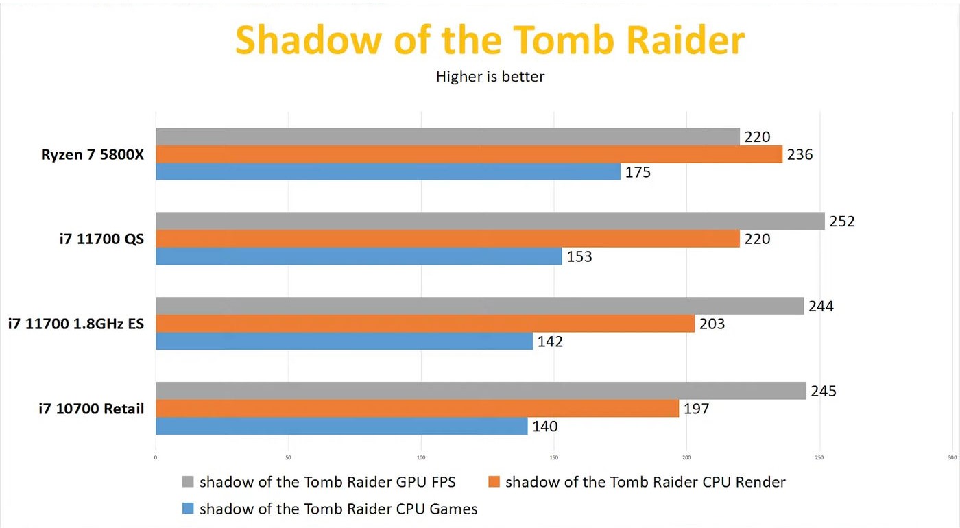 Как видите, новый 8-ядерник Core i7-11700 на базе продвинутой архитектуры Sunny Cove впечатляет. Отметим, что на самом деле Ryzen 7 5800X скорее может выступать оппонентом для версии с разблокированным множителем, которая кроме всего прочего на 600 МГц быстрее в режиме буста. Тем не менее новинка неплохо справляется со своими задачами. В 3DMark у нас полный паритет, а Shadow of the Tomb Raider представитель синего лагеря даже вырывается вперёд.