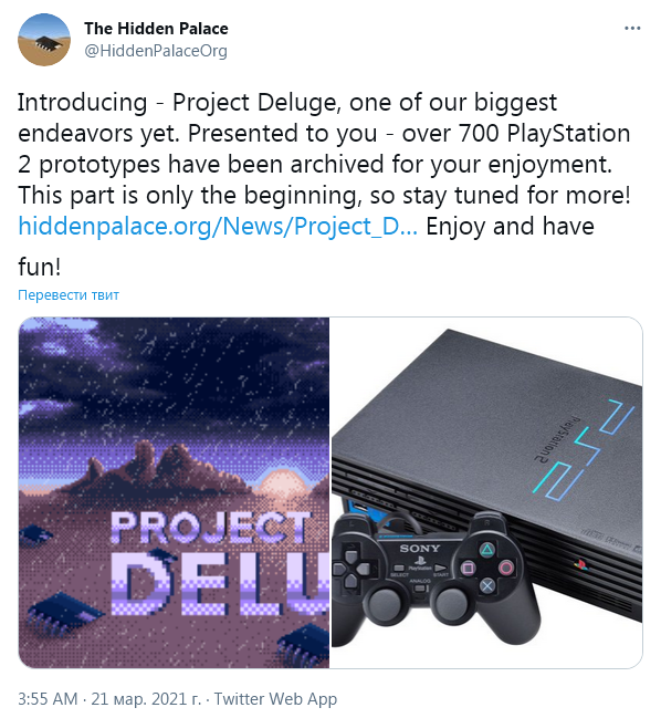 В новом обновлении Hidden Palace опубликовала прототипы и ранние сборки 752 видеоигр для PlayStation 2. Эти материалы были собраны одним человеком, который оцифровал их и передал в архив. Общий объем всех материалов превышает 850 ГБ, большая часть хранилась на оптических носителях.