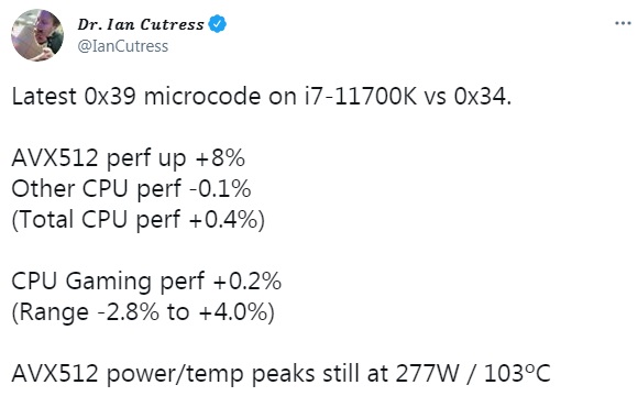При этом использовался микрокод версии 0x34, выпущенный в начале марта, который впрочем, не является самым новым, однако, как показало недавнее тестирование, последняя версия 0x39 принесла лишь рост производительности для задач, задействующих AVX-512.