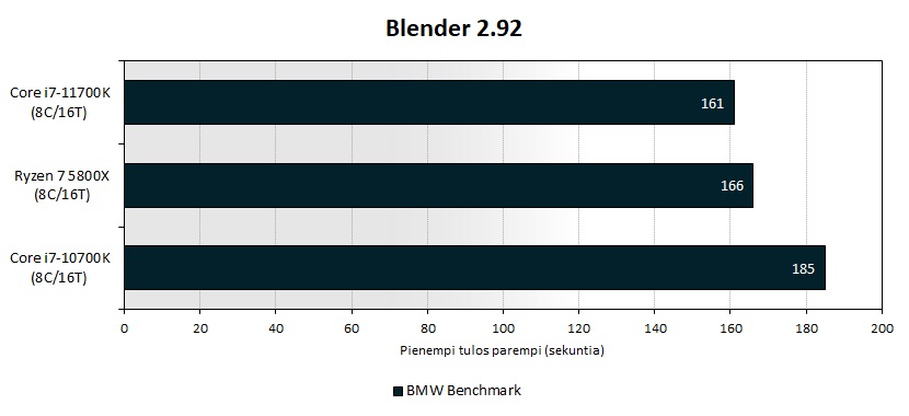 А вот в рендеринге тестовой сцены в Blender 2.92 модель от Intel сумела отыграться, превзойдя своего конкурента на 3.0 %.