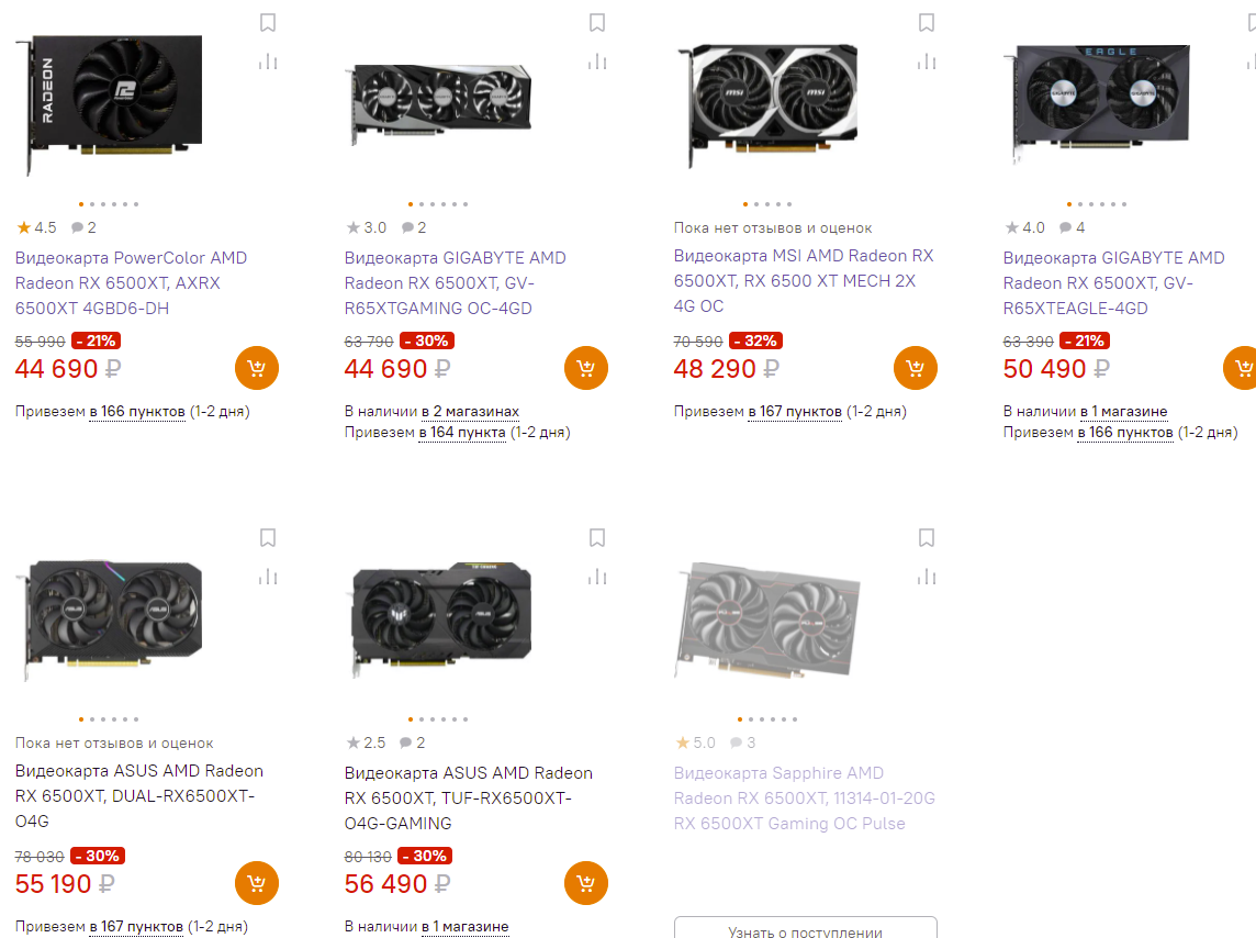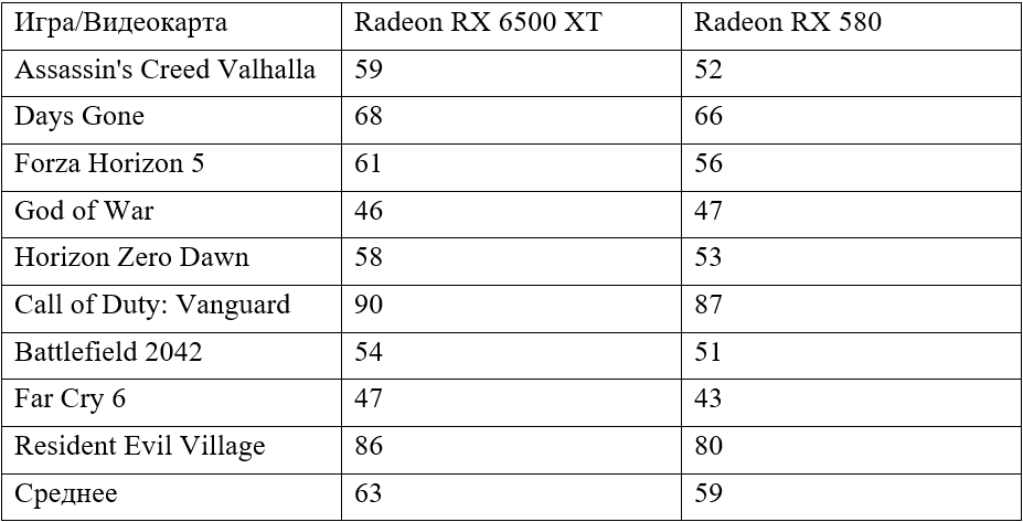 Как видите, при прочих равных между видеокартами разница почти отсутствует. Это значит, что вы можете выбирать исходя из нескольких переменных. Цена: в случае, если вам предлагают Radeon RX 580 по выгодной цене – стоит брать. Мы ведь не ищем флагманскую видеокарту для бескомпромиссного геймера. Именно поэтому для обладателей средних по мощности систем и мониторов с разрешением 1080р она может ещё несколько лет служить верой и правдой. А вот Radeon RX 6500 XT дешёвой не назовёшь, ведь в магазине за неё просят 45 000 рублей. Это как минимум на 10 000 дороже, чем Radeon RX 580, но важно помнить о подводных камнях.