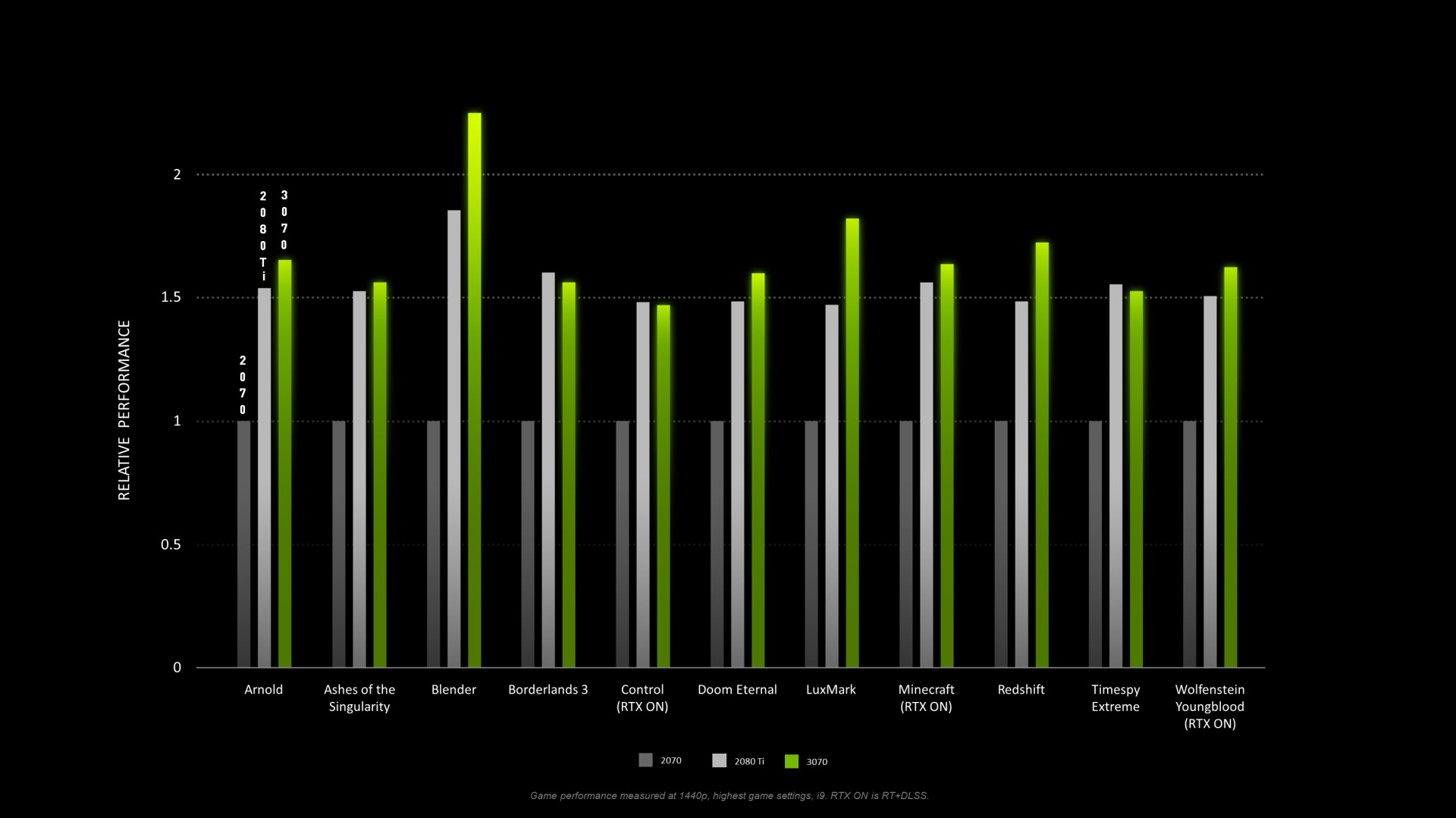 В начале октября NVIDIA опубликовала официальный отчёт, в котором сравнила уровень производительности новинки с моделями прошлого поколения, при этом в Ashes of the Singularity наблюдался практически равный уровень производительности RTX 3070 и RTX 2080 Ti, что и подтвердило тестирование от стороннего специалиста.