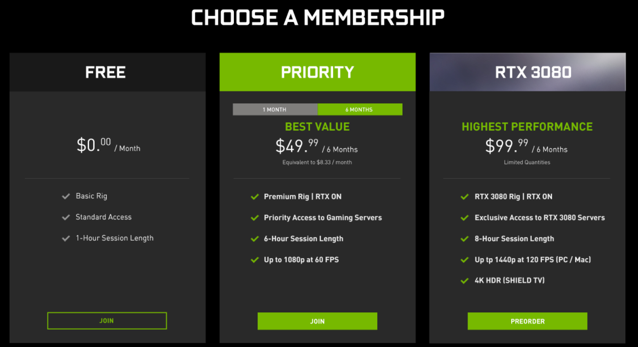 К концу октября предзаказы на аренду топовой видеокарты откроют для всех желающих, сервис запустят в США (ноябрь) и в Европе (декабрь). NVIDIA обещает, что аренда GeForce RTX 3080 позволит обеспечить передачу потокового видео с разрешением до 1440p при 120 кадрах в секунду и в 4K с HDR и 60 кадрах/с на приставке NVIDIA Shield. Продолжительность непрерывной игровой сессии в рамках нового тарифа — до 8 часов.
