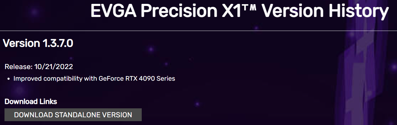 Несмотря на то, что ни одной видеокарты GeForce RTX 40 под брендом EVGA никогда не появится, программисты компании включили RTX 4090 в список поддерживаемых своей фирменной утилитой Precision X1, предназначенной для разгона, мониторинга и настройки карт GeForce RTX. Precision X1 поддерживает управление частотой графического процессора и памяти, регулировку перенапряжения и предела мощности.