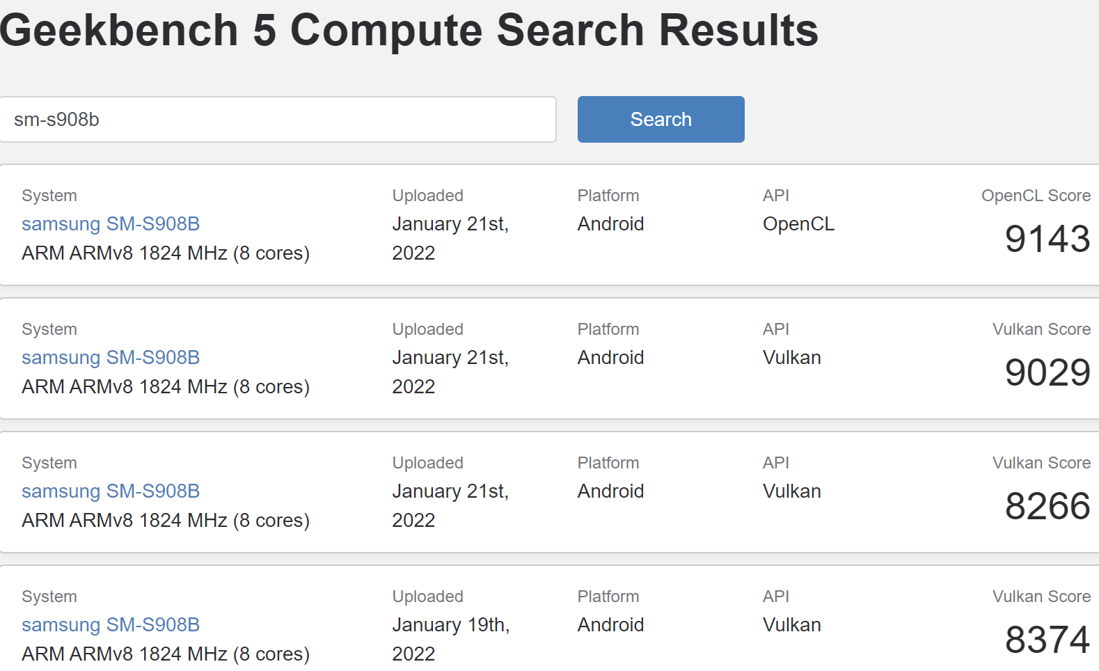 К сожалению, недавно просочившиеся записи тестов Geekbench также не содержали такой информации. Новый чип Exynos указан с тактовой частотой 555 МГц, что намного ниже, чем должно быть, и вряд ли это корректное значение. Графический процессор Xclipse 920 распознается как графический процессор GFX1040, что подтверждает его принадлежность к семейству продуктов AMD RDNA2.