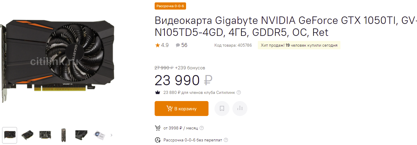 Если вы не верите, что Эфир продолжит падение, покупайте видеокарту сегодня. Таких цен мы не видели с лета 2021 года. Шанс чуть ли не уникальный, а значит нужно рассмотреть предложения. Прежде всего GeForce GTX 1050 Ti. Модель производства Palit куплена в количестве 16 единиц за 22 января, а Gigabyte – 19 штук. В обоих случая цена составила 23 990 рублей. Ещё раз отметим, что это далеко от нормы, но где вы в 2022 году вдели норму? Если у вас есть такие деньги – не тяните, никто не гарантирует, что Эфир не подорожает.