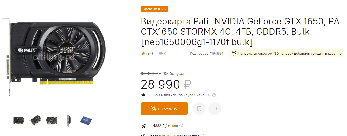 Радует и GeForce GTX 1650. 2 разные модели Palit куплены в количестве 52 единиц. Это настоящий успех, а ведь мы говорим об одном магазине, а доступных моделей гораздо больше двух. Получается, что сегодня за 29 тысяч можно без проблем играть на средневысоких настройках во все игры. Неплохая перспектива.