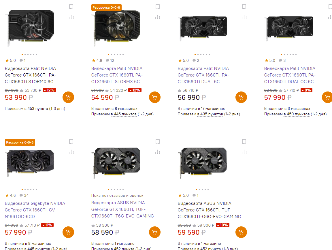 Активно разбирают GeForce GTX 1660 SUPER и GTX 1660 Ti. Обе находятся в топе по заказам, поскольку стоят от 56 тысяч рублей. Ещё полтора месяца назад майнеры разбирали такие видеокарты за 80 тысяч. Интересно, не жалеют ли они о своём поступке? 56 000 рублей – это весьма немало за видеокарту такого уровня. Если Эфир задержится на низких позициях ещё неделю, то цена упадёт ещё, но пока о судьбе криптовалют можно только гадать.