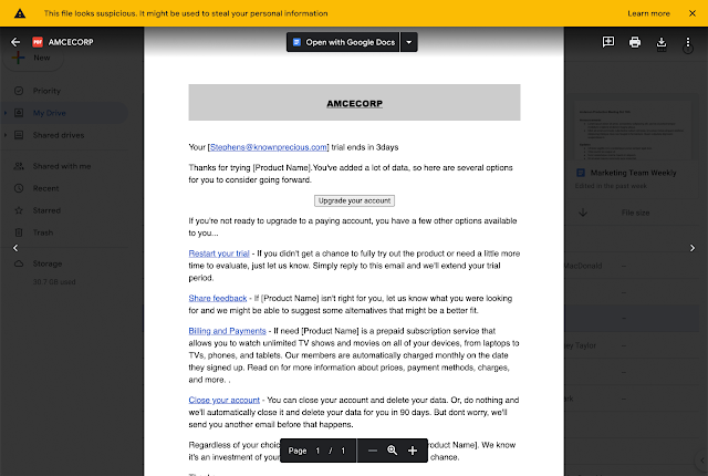 При открытии файла на Google Диске, будь то изображение, документ или вообще любой файл, служба определит и сообщит вам, если с ним что-то не так. Если это подозрительный файл, сверху появится желтое предупреждение. Это незначительное изменение, но оно может оказаться очень полезным.