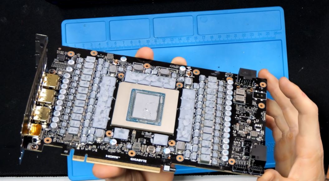 Результатом этой модификации стало выгорание печатной платы видеоадаптера в двух местах, а также вылетание одного из конденсаторов со своего места. При этом GPU и память видеокарты не пострадали, что позволяет использовать их на другой плате.