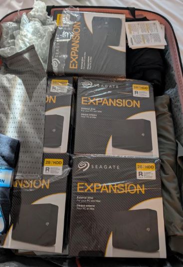 Пользователь Reddit под ником u/cgtechuk из сабреддита r/DataHoarder рассказал, как решил проблему высоких цен на жесткие диски в Великобритании. Он давно следил за стоимостью 28-терабайтных HDD и заметил, что она только растет. Тогда после Нового года он купил билет в США. Там он заказал десять дисков в двух магазинах — Best Buy и B&H Photo — и полетел забирать покупку.