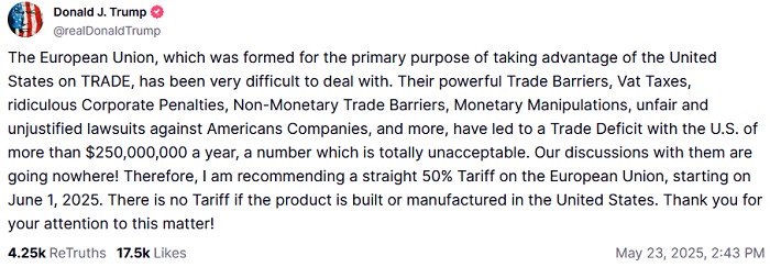 Так, сегодня Трамп заявил, что уже давно уведомил главу Apple Тима Кука о том, что iPhone, которые продаются в США, также должны производиться в США, «а не в Индии или где бы то ни было ещё». В противном случае, добавил американский лидер, Apple придётся платить пошлины в размере как минимум 25 %.