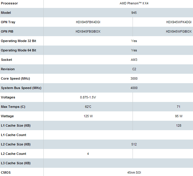 Наконец, у четырёхъядерного процессора Phenom II X4 945 (3.0 ГГц) теперь появился дублёр с более низким уровнем энергопотребления: 95 Вт против прежних 125 Вт. Стоят они одинаково ($225), различить их можно по маркировке: HDX945FBK4DGI (125 Вт) и HDX945WFK4DGI (95 Вт). О прочих изменениях в прайс-листе AMD мы поговорим в отдельном материале.