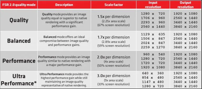 Требования FSR 2.0 к производительности стали выше, технология по-прежнему поддерживает видеокарты из не самых современных серий, но только производительные, среднего сегмента и выше. Например, для целевого разрешения масштабирования 1080p рекомендуется NVIDIA GeForce GTX 1070 или Radeon RX 590. Разработчики игр для Xbox также получат доступ к технологии. Пользователям доступны четыре уровня качества от Ultra Performance до Quality. В первом случае технология может увеличить размер изображения в 9 раз — из разрешения 640×360 сделать 1080p.