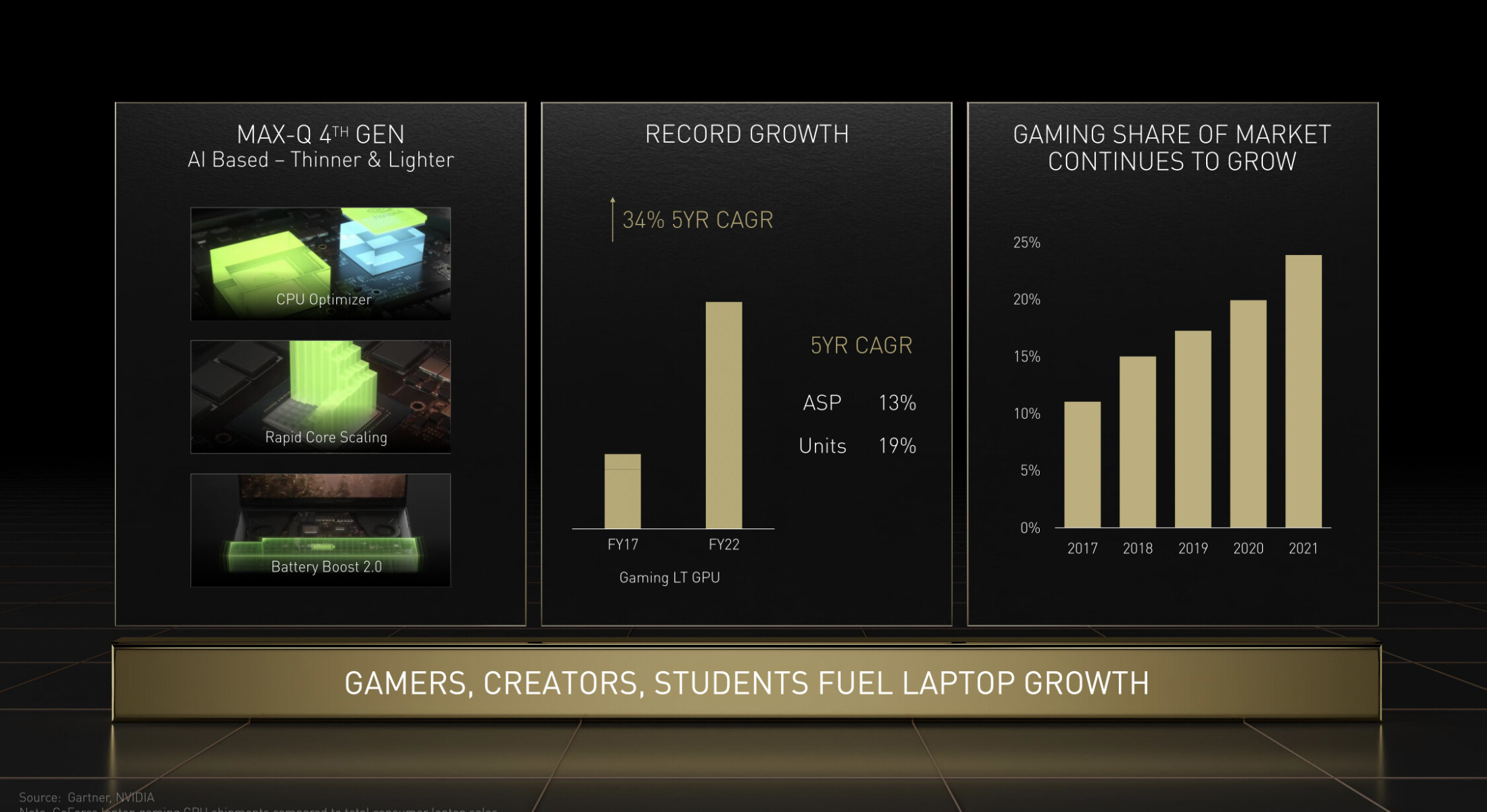 В сочетании с увеличением ASP, увеличивается количество графических карт, отгружаемых клиентам с ежегодным ростом продаж на 11%. Таким образом NVIDIA не только продает более дорогие видеокарты, но также и большее их количество. Компания ожидает, что ее финансовые результаты будут неуклонно улучшаться. По данным Nvidia, за последние пять лет рост количества игроков в среднем составлял 50 миллионов в год, и нет никаких предпосылок, что эти показатели замедлятся.