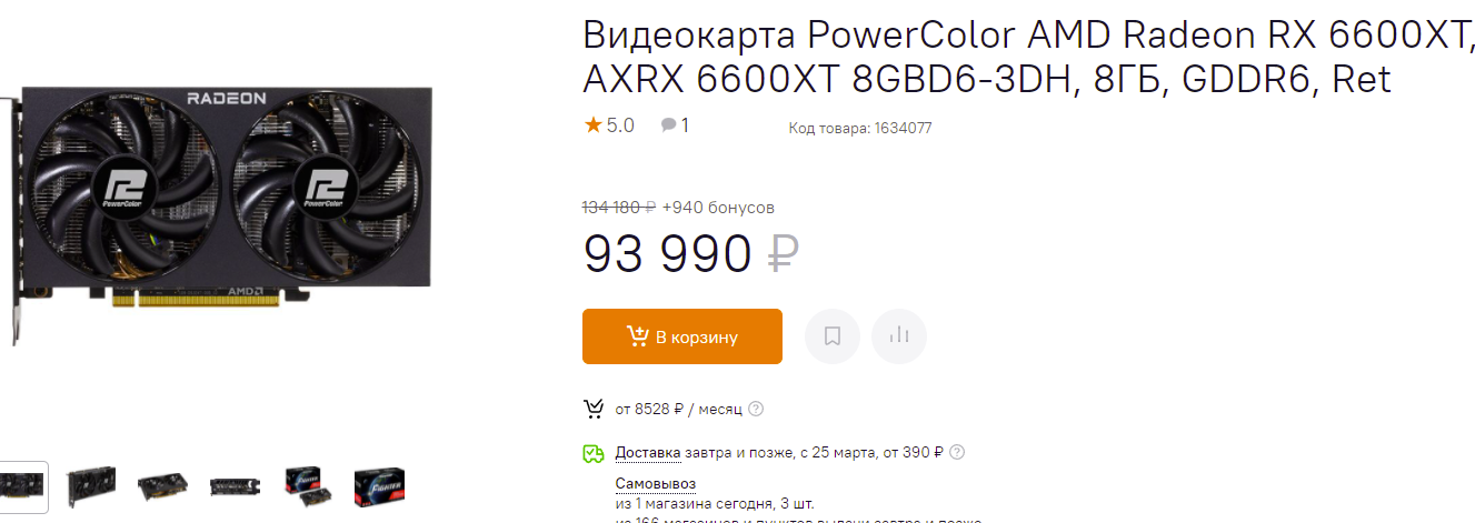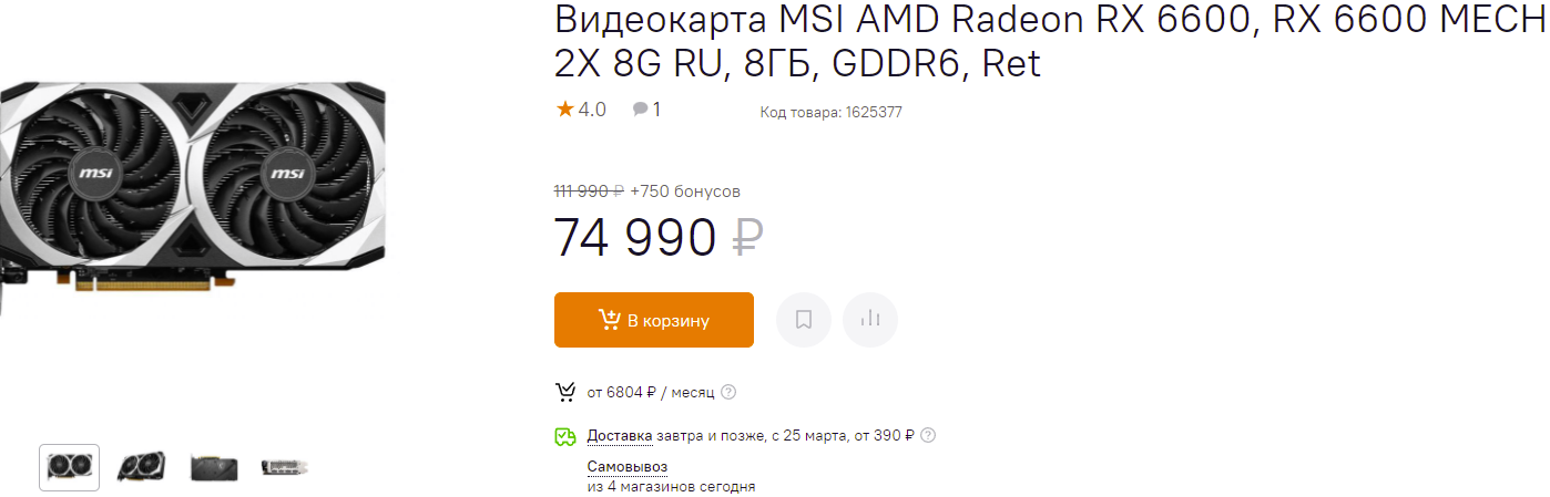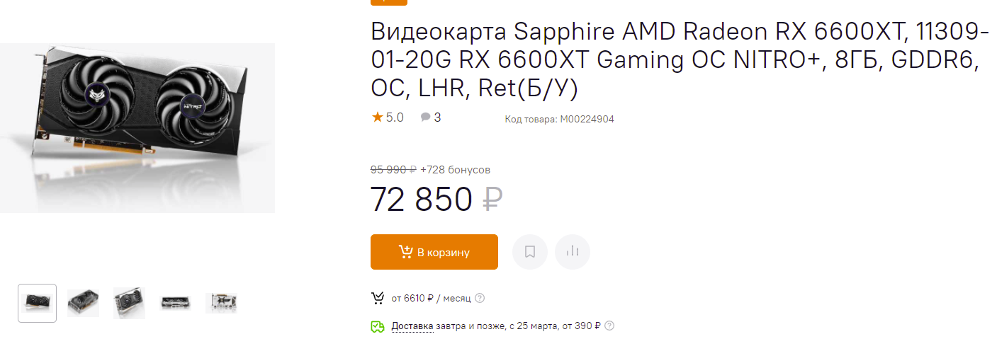 Если успеете, то мы крайне советуем вам купить Radeon RX 6600 XT производства Sapphire. На момент написания данного материала она в наличии и стоит 72 850 рублей. Это на 12 000 рублей дешевле, чем предыдущая Radeon RX 6600. Скорее всего, в наличии всего несколько единиц, поэтому поторопитесь.