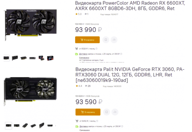 Если у вас есть 100 000 рублей, и вы задумали купить новую видеокарту на эту сумму, то с высокой долей вероятности обратите внимание либо на Radeon RX 6600 XT, либо на GeForce RTX 3060. Обе слишком переоценены и должны стоить намного дешевле, но целый ряд факторов привёл к тому, что бодрые середняки превратились в настоящих флагманов. Поскольку выбора пока нет, то многие геймеры ищут возможности: берут видеокарты в кредит, либо долго копят. Нужно понимать, что любая из указанных выше видеокарт является отличным выбором. Обе подходят для разрешения 2К, хотя настройки графики придётся снижать до средневысоких сразу же после покупки. Вообще многое зависит от ваших привычек. Например, если до этого вы использовали игровую приставку, то стабильные 30 кадров в секунду вам покажутся нормальными, а значит вам и Radeon RX 6600 XT, и GeForce RTX 3060 будут долго считаться актуальными. В то же время, если вы привыкли в более плавной картинке с 60 fps и выше, то рассматривать данные видеокарты как долговременную инвестицию мы не рекомендуем.