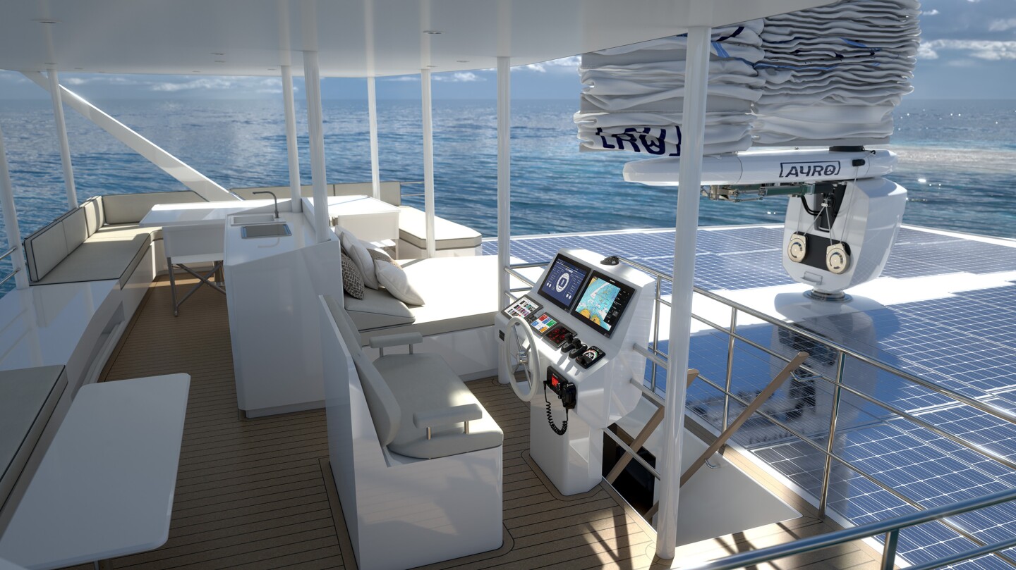 Zen50 имеет поста управления рассчитанного на двух человек, при этом площадь флайбриджа составляет 34 м2. Zero Emission Nautic Ltd