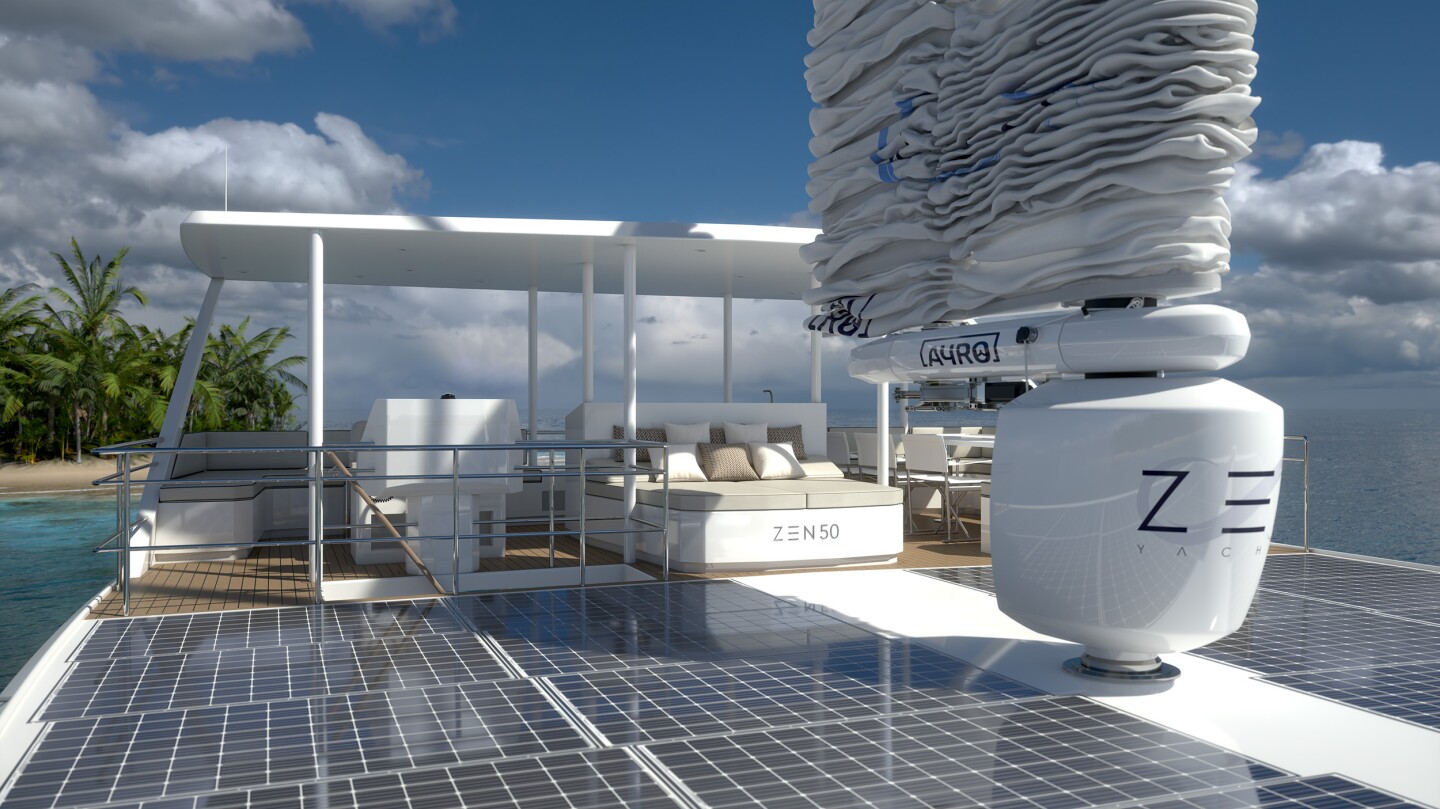"Наши клиенты знают, что им предстоит управлять катамараном с нулевым уровнем выбросов; они не ищут плавучий отель, а хотят наслаждаться впечатлениями и воссоединиться с природой", - говорится в пресс-релизе Zen Yachts. "Крылатый парус служит для увеличения дальности и скорости, позволяя тем, кто мечтает путешествовать по океанам со своими семьями, делать это, не оставляя углеродного следа".