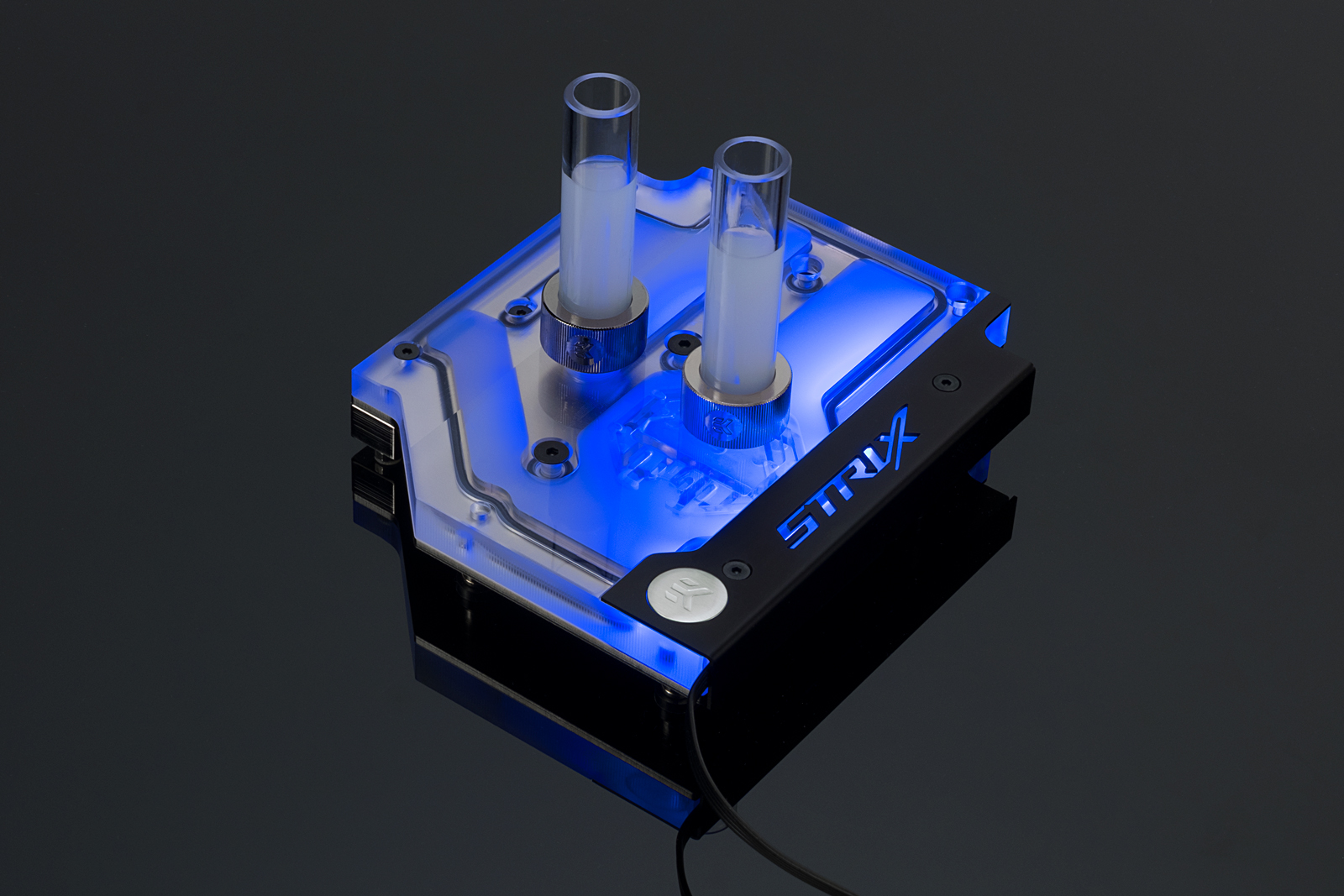 EK-FB ASUS Strix X470 RGB Monoblock имеет встроенную 4-контактную светодиодную полосу RGB, что делает ее совместимой с ASUS Aura Sync и обеспечивает полную настройку качества освещения! Светодиодная полоса RGB подключается к 4-контактному светодиодному разъему материнской платы или может быть подключена к любому другому 4-контактному светодиодному контроллеру. Крышка светодиодной ленты легко снимается для регулировки ориентации кабеля или замены светодиодной полосы с помощью специального решения!