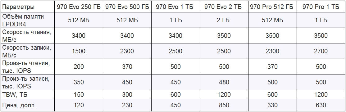 Samsung 970 PRO обеспечивает последовательную скорость чтения до 3500 МБ/с и скорость последовательной записи до 2700 МБ/с, в то время как EVO обеспечивает скорость последовательного чтения до 3500 МБ/с и скорость последовательной записи до 2,500 Мбайт/с. Последовательная скорость записи представляет собой увеличение до 30 % по сравнению с предыдущим поколением, благодаря новейшей технологии V-NAND от Samsung и недавно разработанному контроллеру Phoenix. 970 EVO, в частности, использует технологию Intelligent TurboWrite с большим размером буфера до 78 ГБ, чтобы обеспечить более быструю скорость записи.