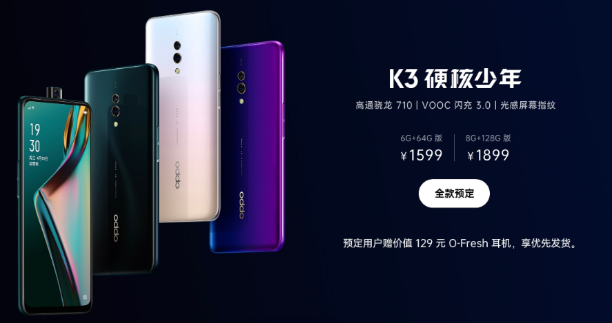 OPPO K3 поступит в продажу в двух цветовых решениях: Nebula Purple и Secret Black. Но ожидается, что в будущем модель можно будет приобрести в расцветках Pearl White и Pearl Pink. Официальная рекомендованная цена OPPO K3 в конфигурации 6/64 Гб составила 230 долларов. За модификацию с 8 Гб оперативки и 128 Гб флэш-памяти придется доплатить 45 долларов. Первые 100 покупателей, которые оформят предварительный заказ, получат скидку в размере 15 долларов от полной стоимости смартфона.