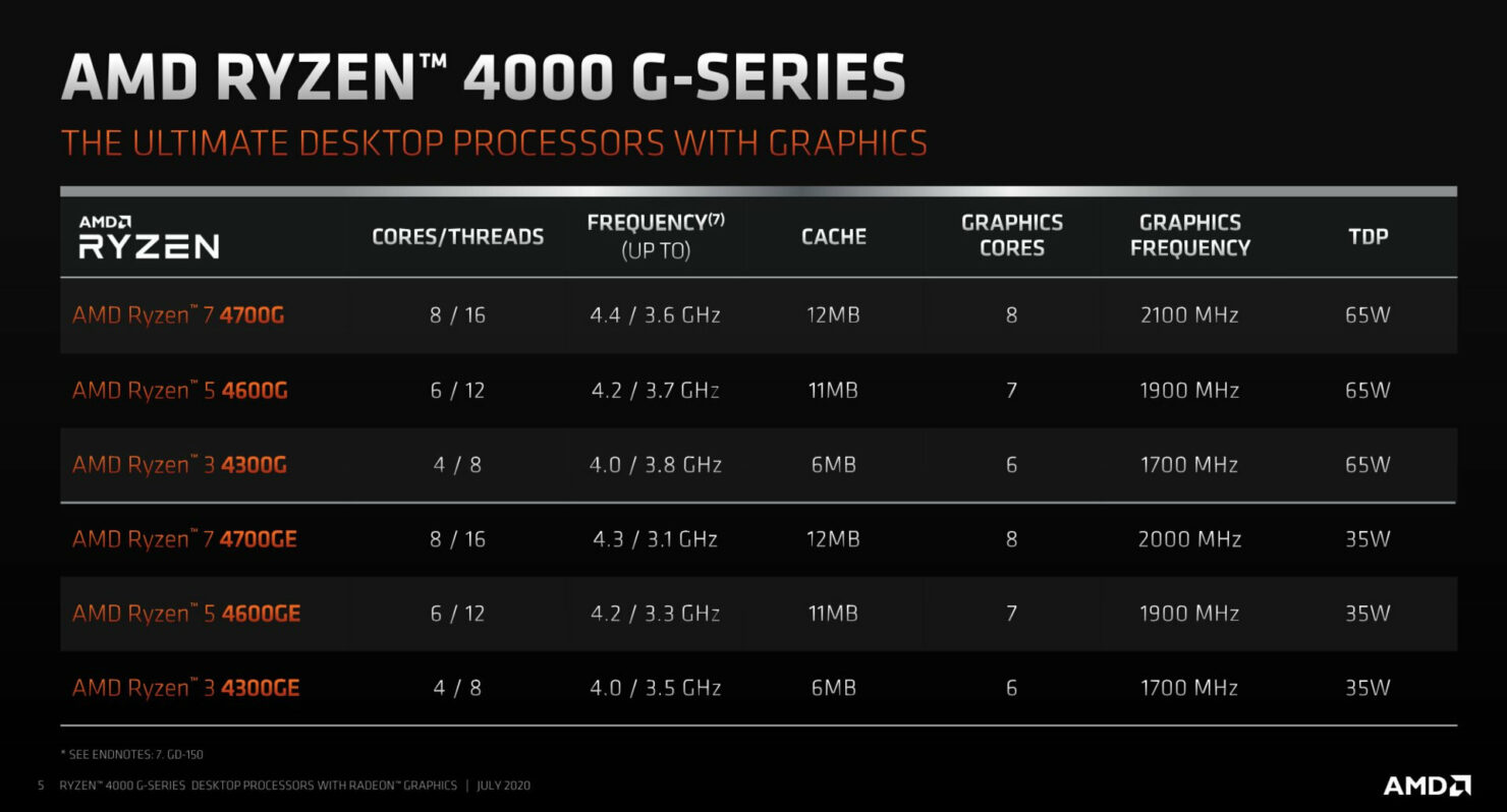 Гибридные процессоры AMD Renoir уже заполняют склады магазинов. Компанией AMD было представлено 12 моделей APU Ryzen в различных категориях. На этот раз линейка расширилась и потребителям стали доступны процессоры с 4, 6 и 8 ядрами, встроенной графикой с 6, 7 и 8 вычислительными блоками. К сожалению, в новой линейке APU не нашлось места встроенной графике Vega с 11 вычислительными блоками. Однако в APU Renoir встроенная графика основана на более совершенном 7-нм техпроцессе, что позволило значительно увеличить частоты графического чипа. По предварительной информации увеличение частот позволило Vega 8 опередить Vega 11 предыдущего поколения.