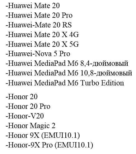 Ниже список этих аппаратов. Он небольшой, поскольку HUAWEI готовится к выходу EMUI 11, которая будет распространяться быстрее, чем текущая версия и охватит более 50-ти аппаратов.