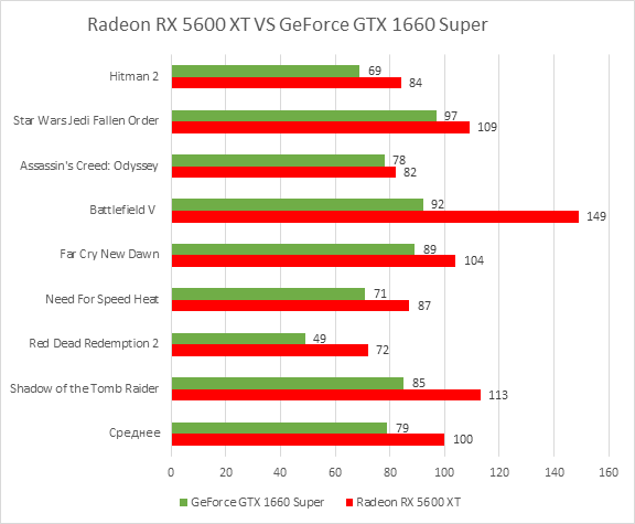 Как видите, разница между двумя видеокартами немного превышает 20 fps. Если сегодня это смотрится некритично, поскольку почти во всех играх модель от NVIDIA способна обеспечить комфортный гейминг, то уже через год ситуация изменится. Это значит, что рекомендовать GeForce GTX 1660 Super сегодня нет никакой возможности. Она отстаёт на 25%, что слишком много для разницы в цене в 5 тысяч рублей. Если бюджет не позволяет, то выбора у вас просто нет. Однако, если вам есть откуда взять лишние пару тысяч рубликов, то выбор очевиден.