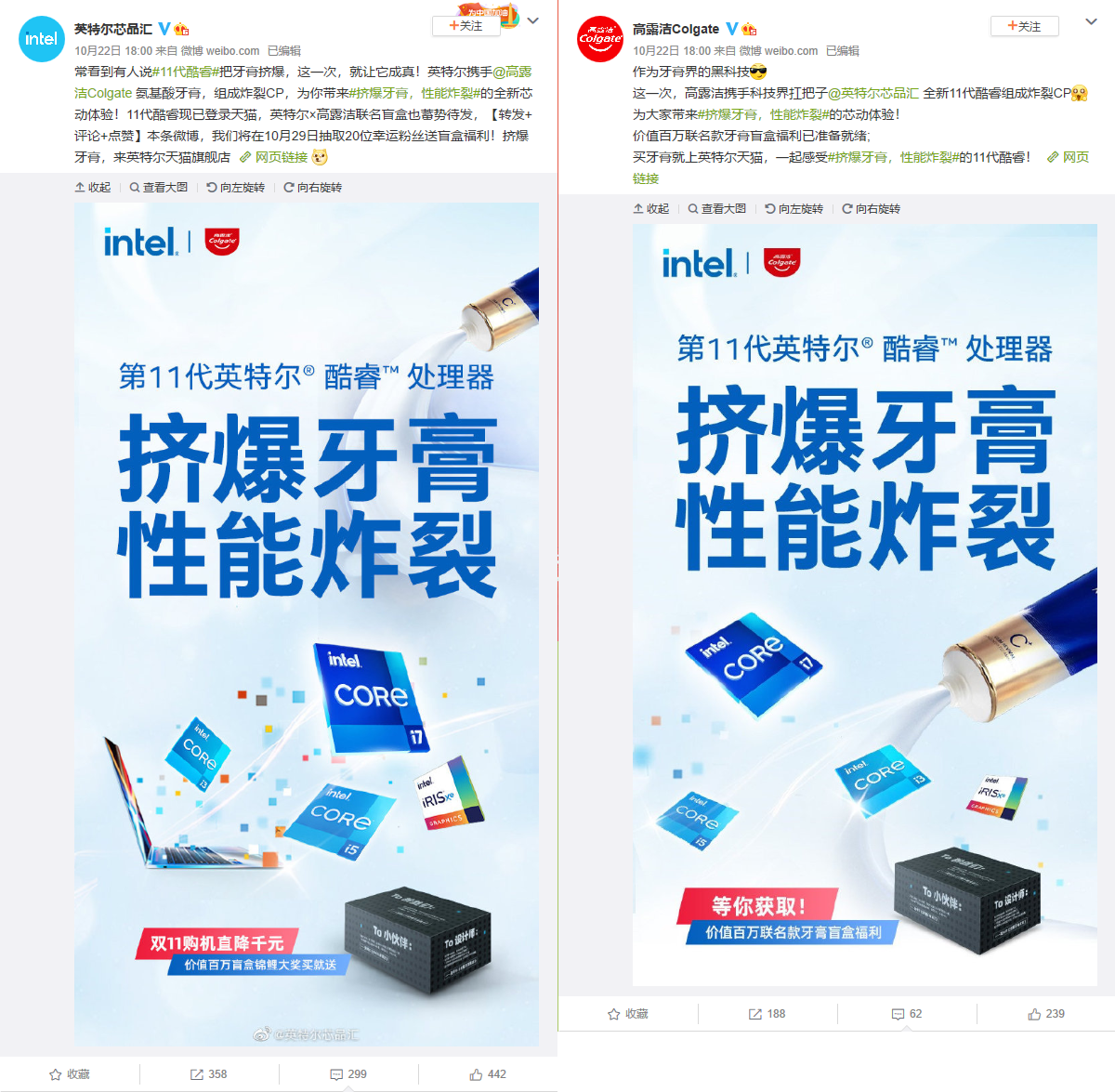 Рекламные постеры можно увидеть на официальных страницах Intel и Colgate в китайской социальной сети Weibo.
