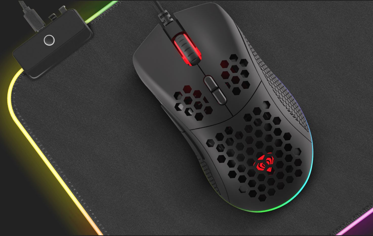 Мышка оснащена в общей сложности семью кнопками, использующими переключатели Huano с низким давлением срабатывания равным 80 граммов силы, срок службы которых составляет 20 миллионов нажатий. Все кнопки можно программировать, что позволяет назначать разные макросы для каждой кнопки. Встроенная память позволяет легко записывать макросы и назначать функции отдельным кнопкам, а сохраненные настройки будут работать на любом компьютере без необходимости установки дополнительного программного обеспечения.