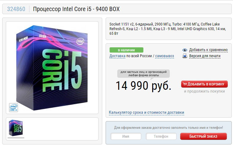 Купить Core i5-9400