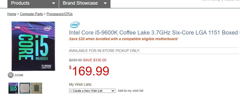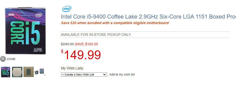 Давайте немного изучим предложения: Core i5-9600K стоит всего 169 долларов. Если повспоминать, то даже во время больших распродаж данный камень столько не стоил. Core i5-9400 не так выгоден, поскольку скидка на него на 30 долларов меньше, что даёт нам возможность взять его за 149 долларов. Если вы принципиальное не хотите ехать в США за отличными скидками, то лучшим выбором будут эти же продукты в Регарде. Вы ведь понимаете, что только отечественный продавец даст вам гарантию в РФ и быструю доставку, на что даже Micro Center не способен.