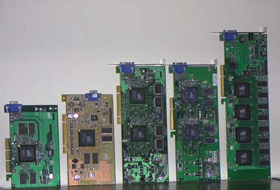 - 3dfx Voodoo 5 5000 PCI 32mb SGRAM. Первая модель семейства Voodoo 5, которую 3dfx планировала выпустить, однако передумала и решила выпускать вместо нее Voodoo5 5500. Плат Voodoo 5 5000 было выпущено всего несколько сотен штук. Карточка нормально работает в 2D, в 3D виснет в случайные моменты времени.