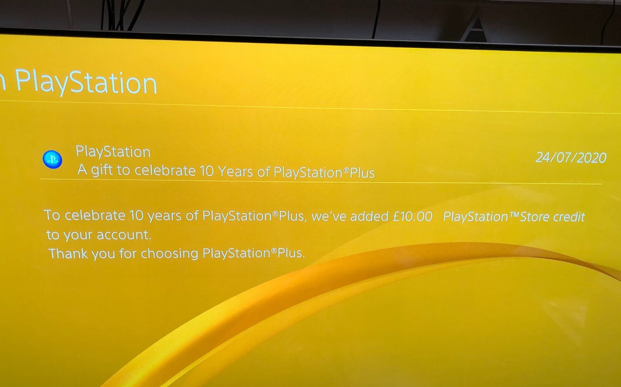 По данным источника, сейчас имеется множество подтверждённых случаев того, что Sony высылает письма со следующим текстом: "Чтобы отпраздновать 10-летний юбилей PlayStation Plus, мы зачисляем на ваш аккаунт бонус в размере бесплатных 10 долларов/фунтов стерлингов. Спасибо, что вы выбрали наш сервис". Валюта зависит от региона проживания.