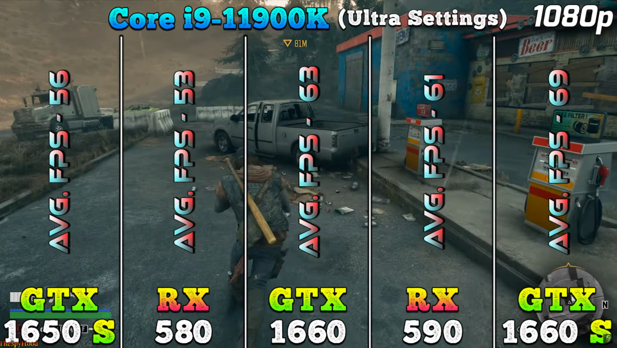 Пожалуй, в данной ситуации оно очень актуально, ведь многие наши читатели сидят и думают: взять Radeon RX 580 с вторичного рынка, или новенькую GeForce GTX 1660 в магазине. В последнем случае вам придётся выложить 45 000 рублей, что сложно назвать разумным вложением. Вы удивитесь, но Radeon RX 580 на Авито стартует с 35 000 рублей. Получается, разница не такая большая, а значит всё дело в производительности. И вот тут нам на помощь приходят ребята с канала TheSpyHood. Ниже мы предлагаем рассмотреть несколько скриншотов, где указано среднее количество кадров в секунду в популярных играх.