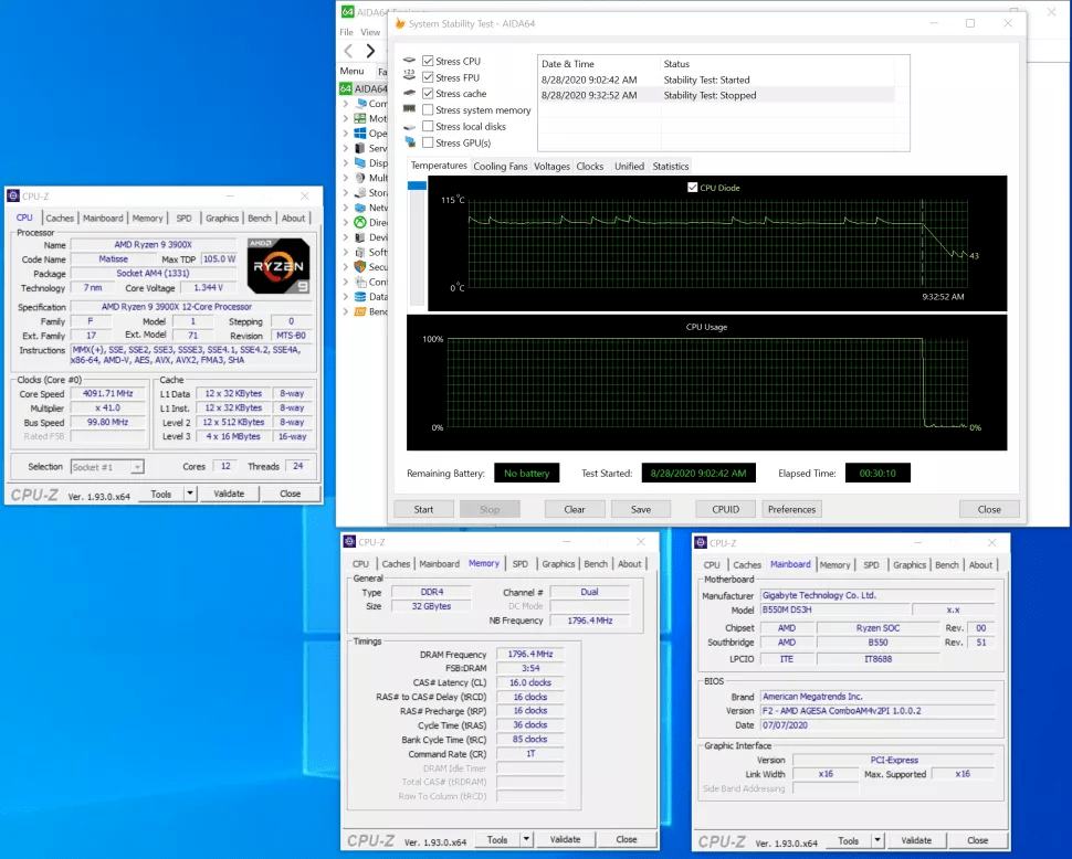 Платы Gigabyte и MSI прошли стресс-тест AIDA64 без проблем на стандартных скоростях. Asus Prime показал хорошие результаты в течение 20 минут, перед тем, как он тронул. ASRock стал троттлить за считанные минуты, быстро поднялся почти до 80 градусов по Цельсию и продержался там в течение всего теста. Плата ASRock просто не смогла справиться с 3900X на стандартных скоростях во время стресс-теста.